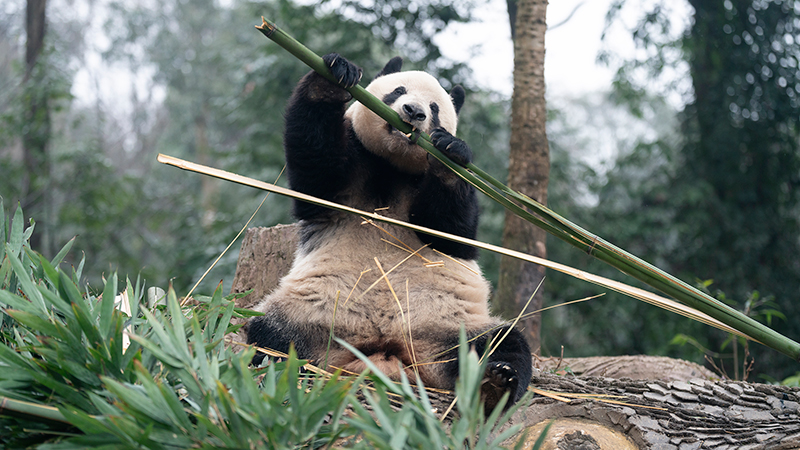 パンダのシャンシャン、竹をバリバリ 中国四川省