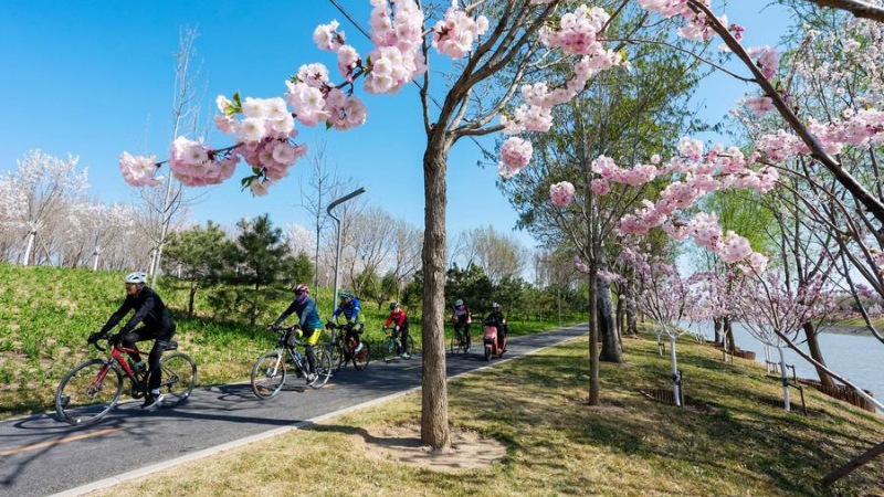 北京の河岸で花見頃 水辺の景観が向上