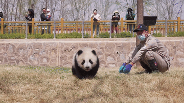 パンダのシンシン、竹を持つ 中国四川省