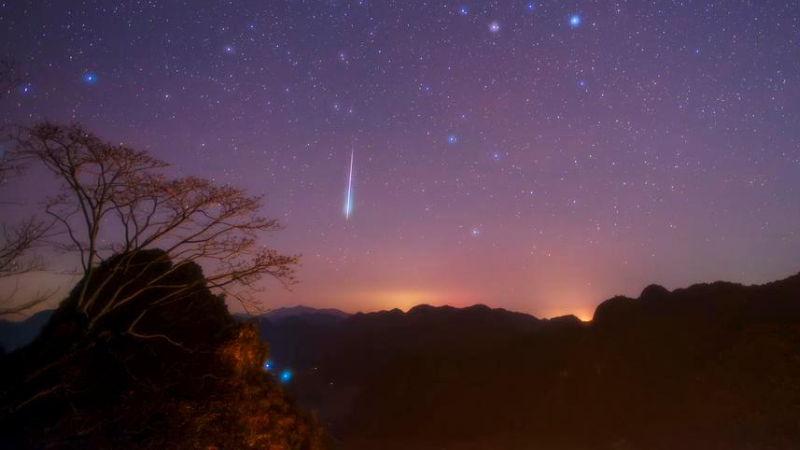 ふたご座流星群とカルスト地形を撮影 中国広西チワン族自治区
