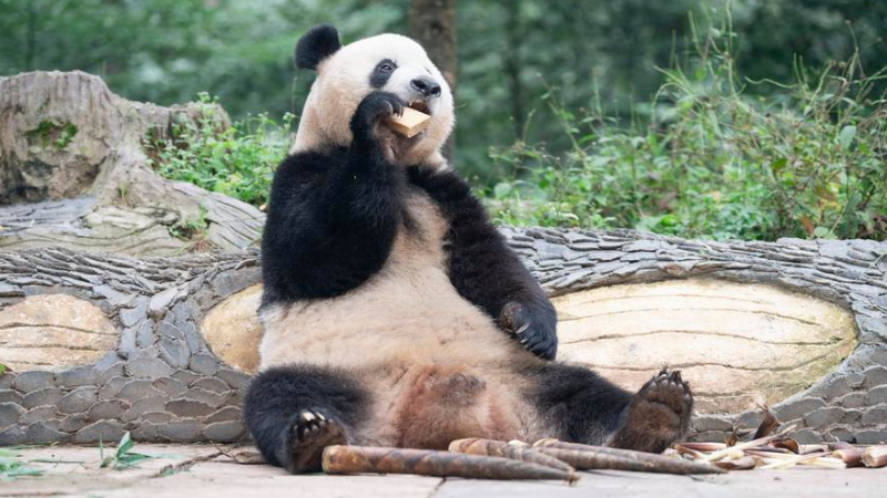 パンダのシャンシャン、おやつタイム 中国四川省 2025-10-11