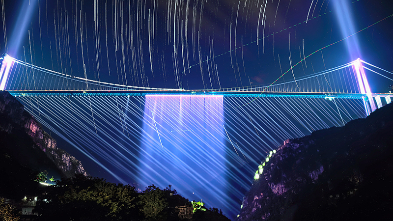 「世界一高い橋」花江峡谷大橋でライトショー 中国貴州省 2025-10-13