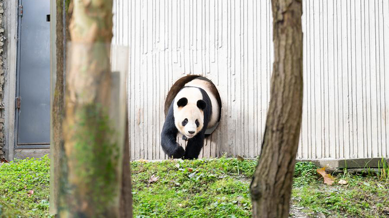 パンダのリーリー、のんびりお出かけ 中国四川省