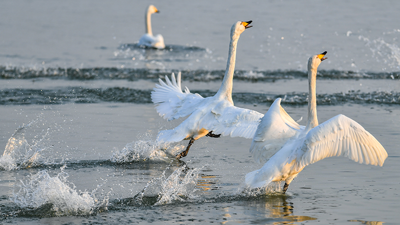 初冬の黄河湿地にハクチョウが飛来 中国山西省 2025-11-16