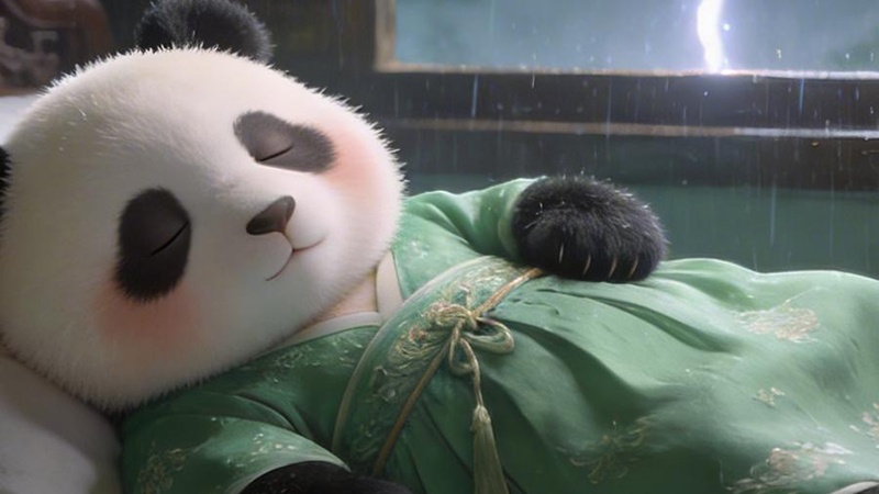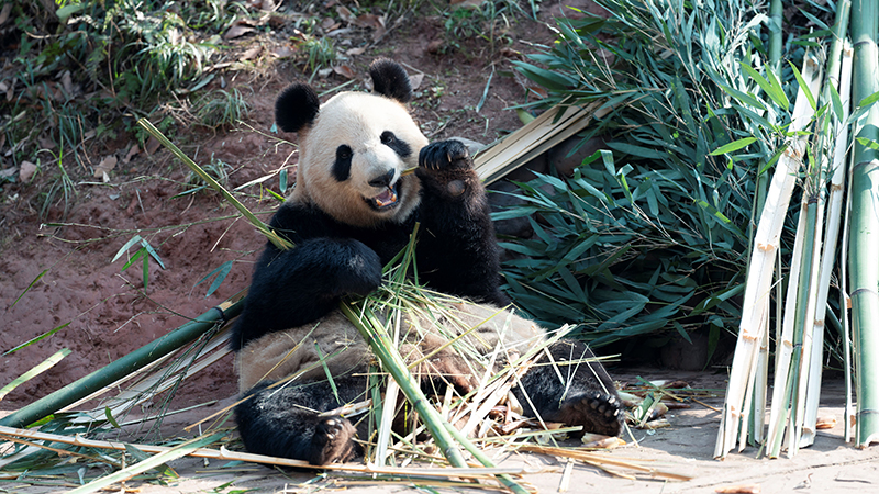 パンダのシンシン、竹を堪能 中国四川省