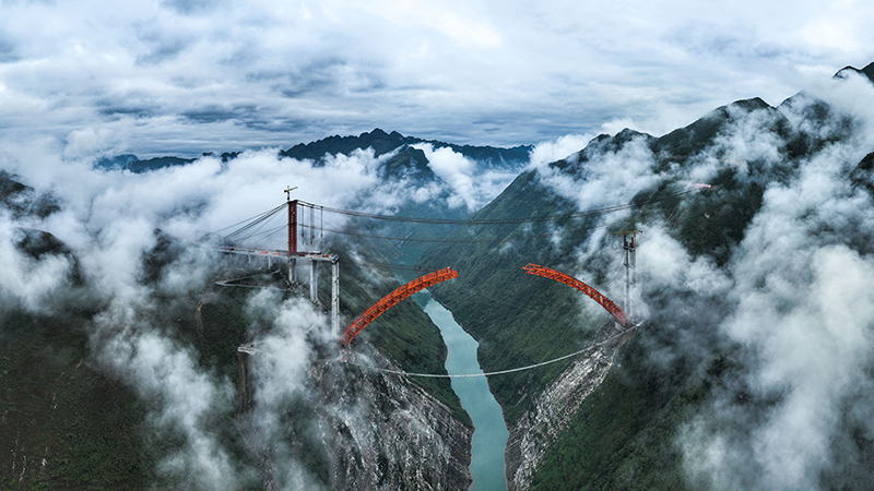 古牛河で建設進む特大のアーチ橋 中国貴州省