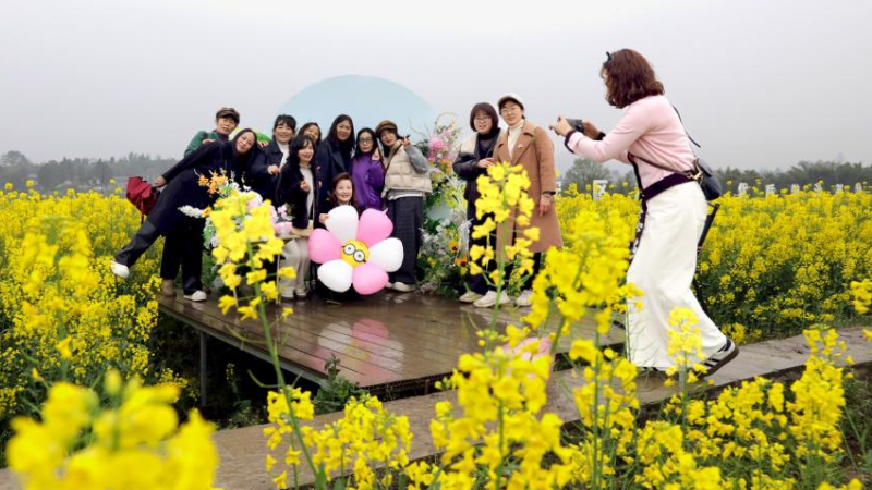カラフルな菜の花畑に観光客注目 中国江西省南昌市