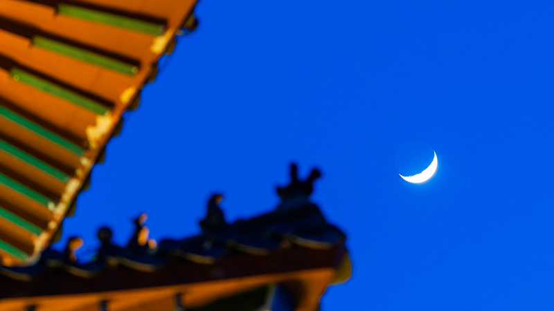 中国の夜空に今年最大の三日月