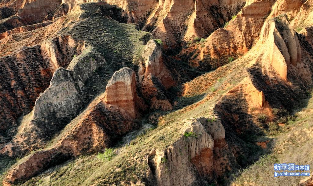 【新華社楡林6月14日】中国陝西省楡林市楡陽区の麻黄梁黄土地質公園は夏を迎え、連なる黄土峰林や緑の草地、巨大な断層などが青空や白い雲と互いに引き立て合い、大自然の趣あふれる風景を作り出している。