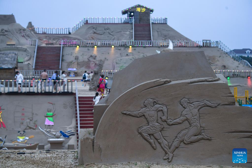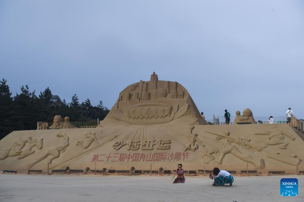 【新華社舟山7月1日】中国浙江省舟山市の景勝地、朱家尖南沙景区でこのほど、第23回舟山国際砂彫刻フェスティバルが開幕した。フェスは同市の夏を代表するイベントの一つで、会場に砂像60点余りを集中的に展示している。pagebreak