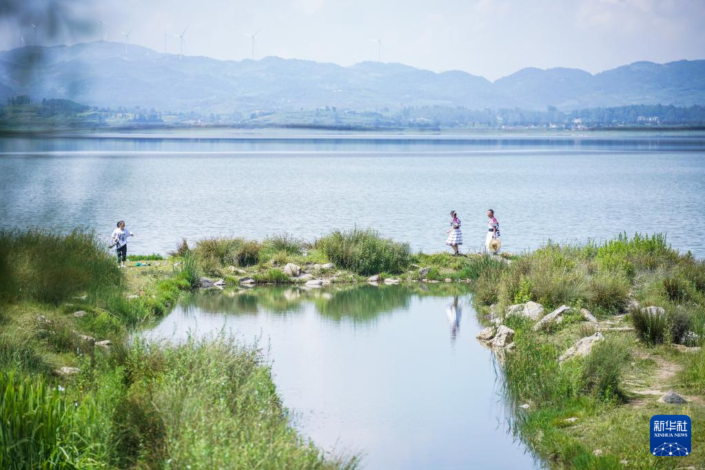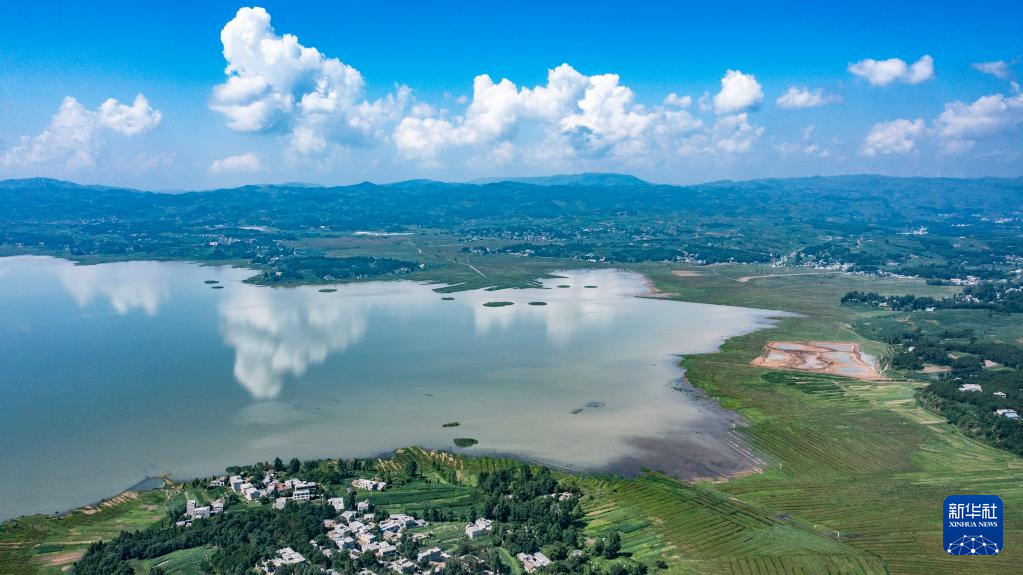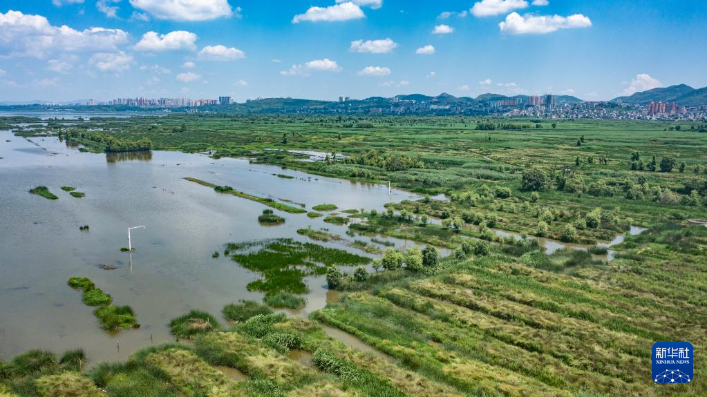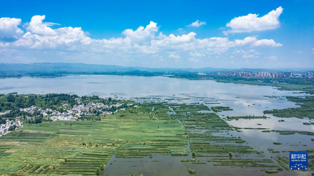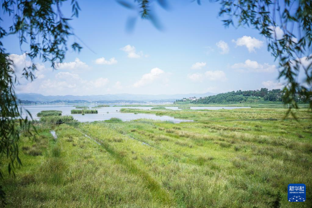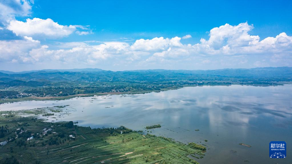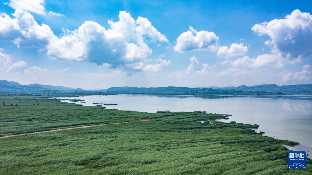 【新華社畢節7月12日】中国貴州省畢節(ひっせつ)市威寧イ族回族ミャオ族自治県にある草海国家級自然保護区ではこのところ晴天が続き、真っ青な夏空が広がっている。pagebreak