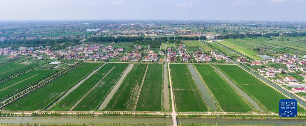 江蘇省南通市海門区悦来鎮にある高規格農地。(7月26日、小型無人機から撮影、南通=新華社記者/李博)pagebreak