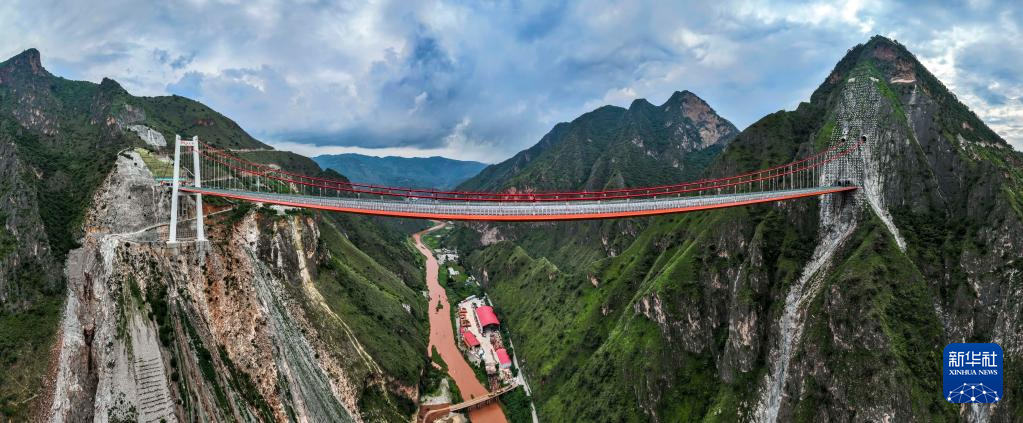 25日、玉楚高速道路の緑汁江大橋。(パノラマ写真、小型無人機から、楚雄=新華社記者/江文耀)pagebreak
