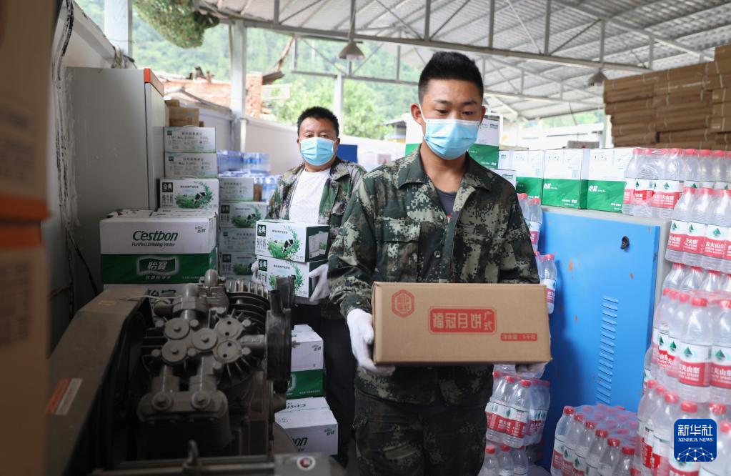 9日、石棉県王岡坪郷に設けられた臨時避難所で、物資を運ぶスタッフ。(雅安=新華社記者/劉瓊)pagebreak