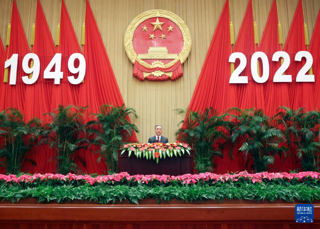 中国人民政治協商会議(政協)全国委員会弁公庁、中国共産党中央統一戦線工作部、国務院僑務弁公室、国務院香港マカオ事務弁公室、国務院台湾事務弁公室、中華全国帰国華僑連合会(中国僑連)は27日、北京の人民大会堂で国慶節(新中国成立記念日、10月1日)レセプションを共同で開催し、中華人民共和国成立73周年を祝った。汪洋(おう・よう)中国共産党中央政治局常務委員・政協全国委主席が出席し、あいさつした。(北京=新華社記者/劉衛兵)
