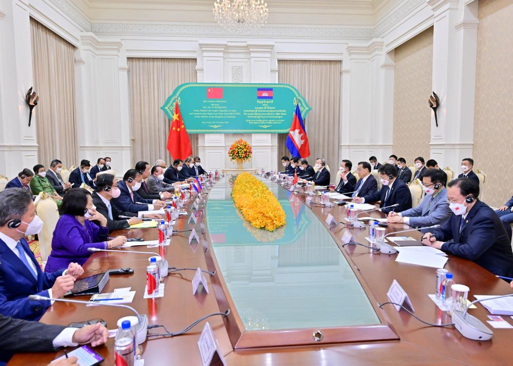 【新華社プノンペン11月10日】中国の李克強(り・こくきょう)国務院総理は9日午後、カンボジアの首都プノンペンの首相府で同国のフン・セン首相と会談した。