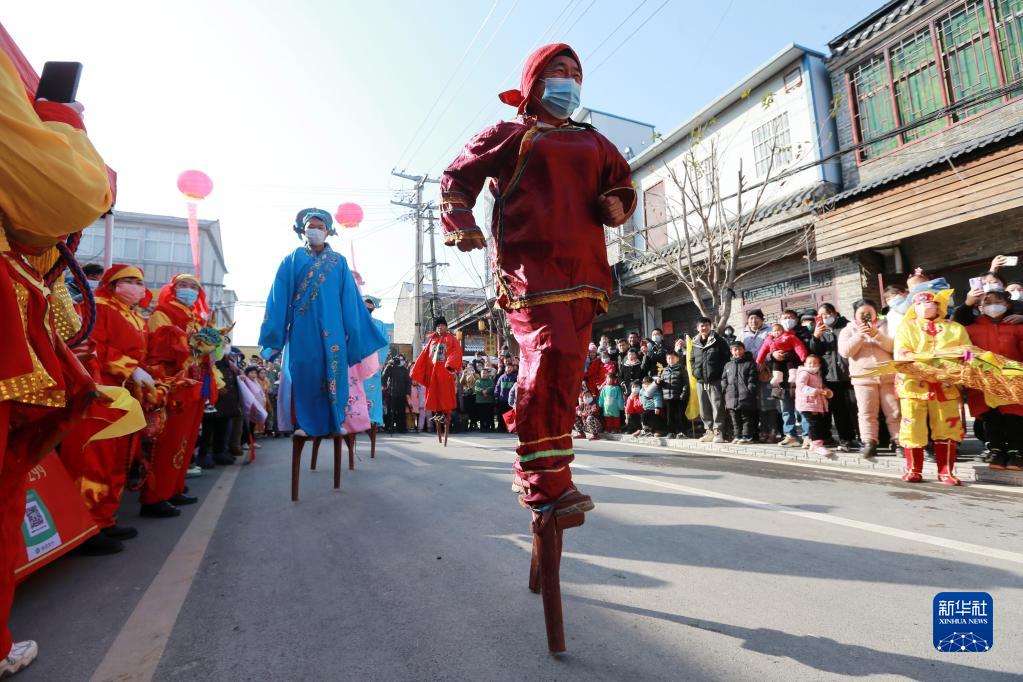 【新華社淮北1月21日】春節(旧正月)を控え、中国安徽省淮北(わいほく)市濉渓(すいけい)県の「千年の古鎮」臨渙鎮では、民俗芸能を披露したり、年越し用品を選ぶ人の姿が見られ、年越しムードが高まっている。pagebreak