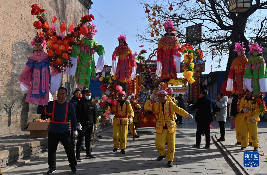 25日、山西省晋中市の北洸村で披露された伝統行事「社火」。(晋中=新華社記者/馬毅敏)pagebreak