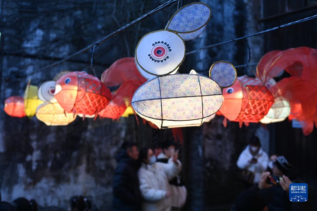 25日、浙江省桐郷市の烏鎮風景区に吊るされたランタン。(桐郷=新華社記者/黄宗治)pagebreak