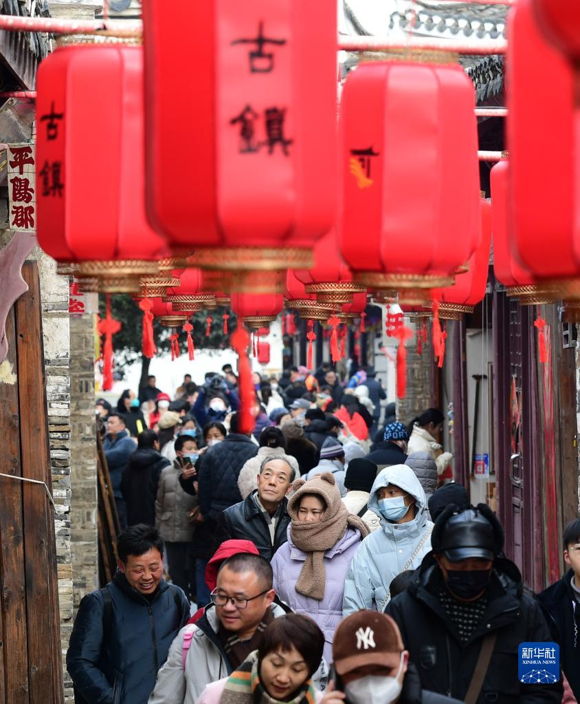 24日、安徽省肥西県の三河古鎮風景区を散策する人たち。(肥西=新華社配信/徐勇)pagebreak