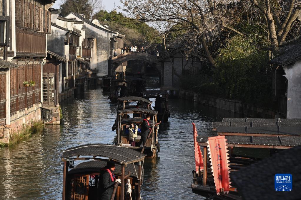 25日、浙江省桐郷市烏鎮風景区の遊覧船。(桐郷=新華社記者/黄宗治)pagebreak