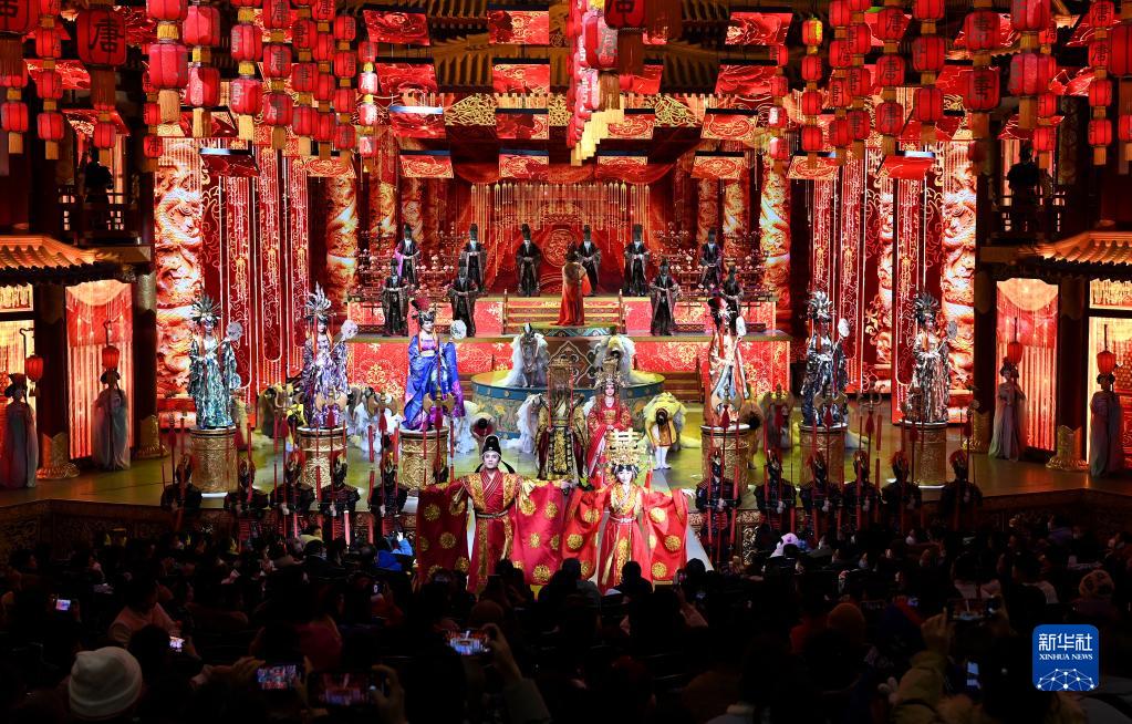 24日、陝西省西安市の大唐芙蓉園で披露された音楽劇「夢回大唐」。(西安=新華社記者/劉瀟)