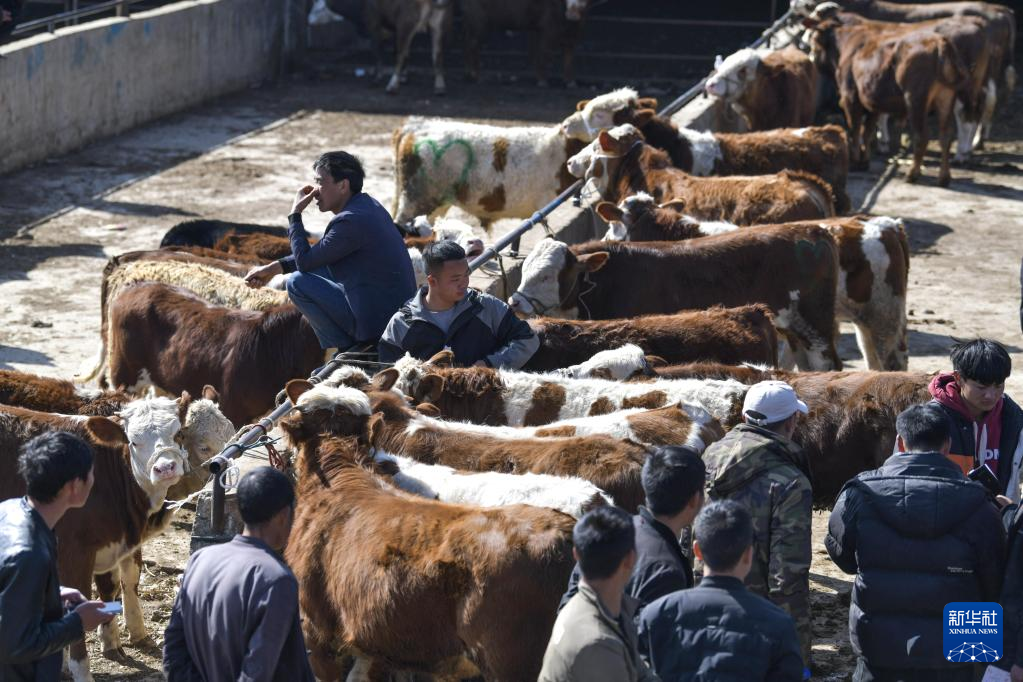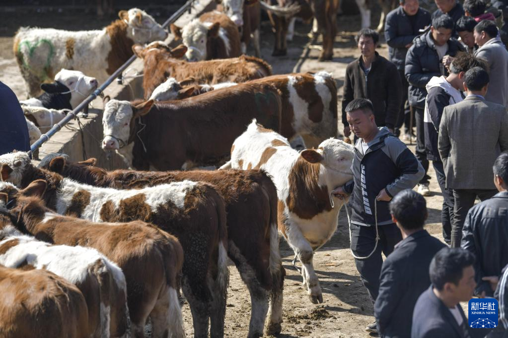【新華社畢節2月13日】中国貴州省畢節(ひっせつ)市威寧イ族回族ミャオ族自治県では、牛の取引が最盛期を迎えている。小海鎮にある家畜取引市場には、省内のほかにも雲南省、四川省、広西チワン族自治区から農家や業者が集まり、春の耕作に備えて耕牛や繁殖牛などを盛んに売り買いしていた。pagebreak