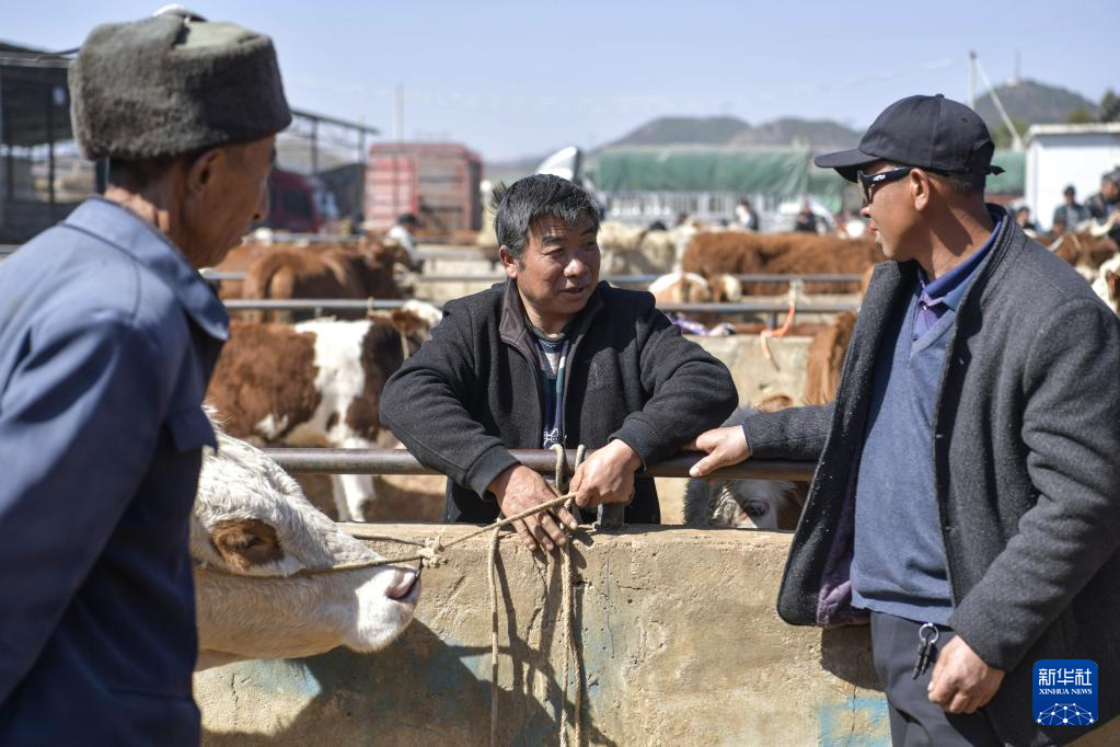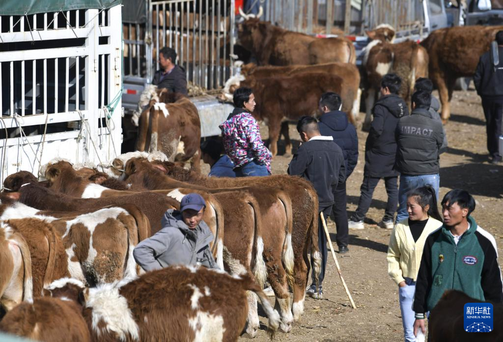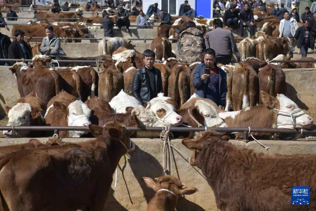 11日、小海鎮の家畜取引市場で家畜を選ぶ人たち。(威寧=新華社記者/楊文斌)