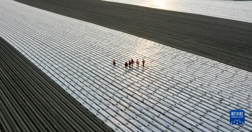 2月27日、山東省臨沂(りんぎ)市沂南県銅井鎮三社荘村の畑で働く農家の人。(臨沂=新華社配信/王彦氷)pagebreak