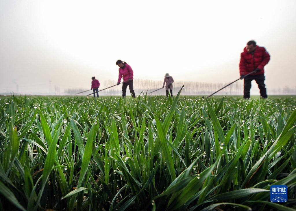 2月28日、河南省焦作市博愛県磨頭鎮獅口村の畑で働く農家の人。(焦作=新華社配信/程全)pagebreak
