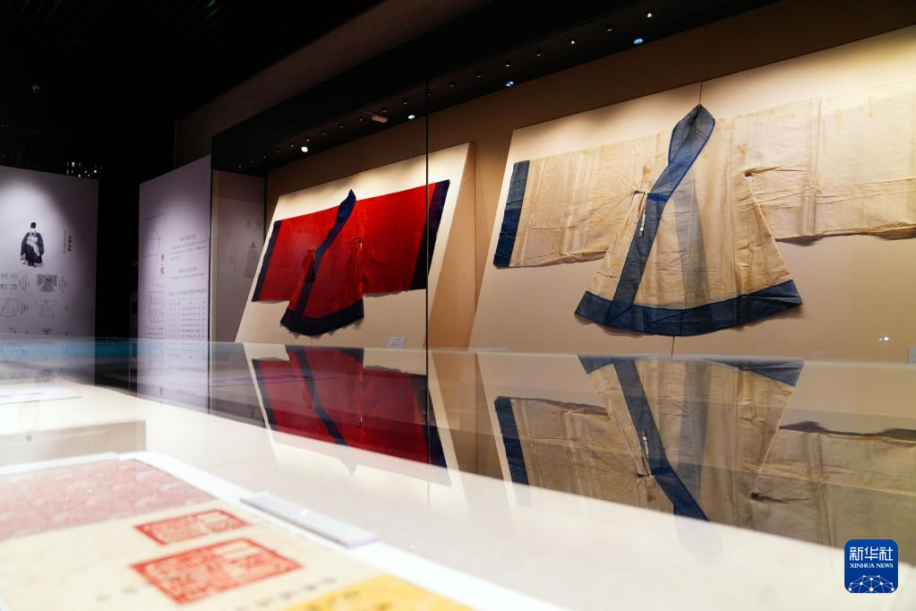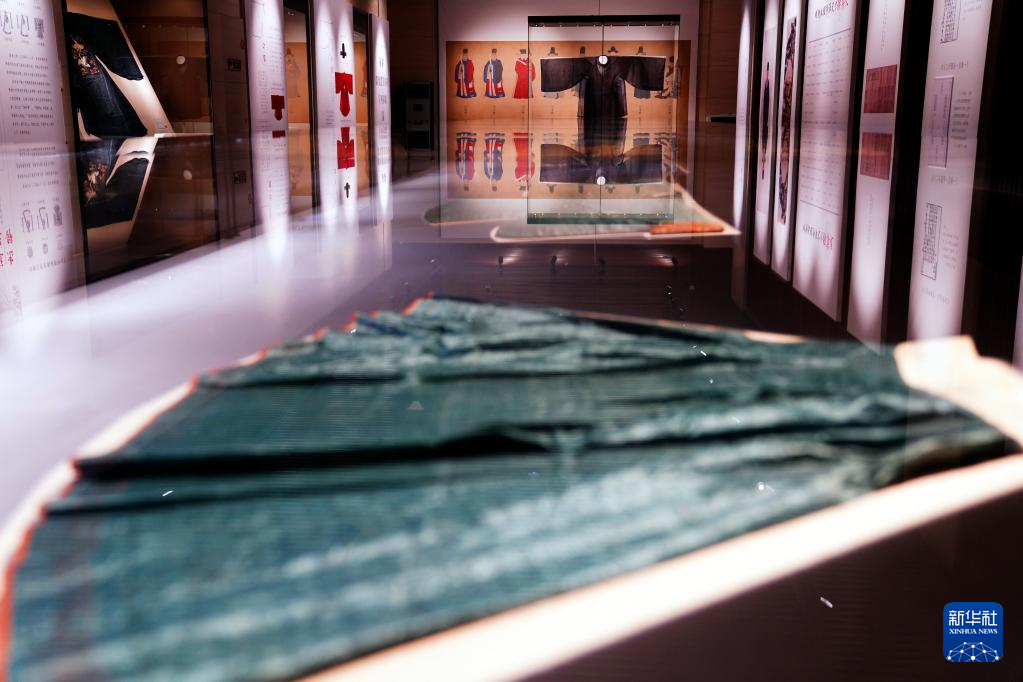 8日、「明代衍聖公服飾展」で展示された衣装。(済南=新華社記者/張昕怡)