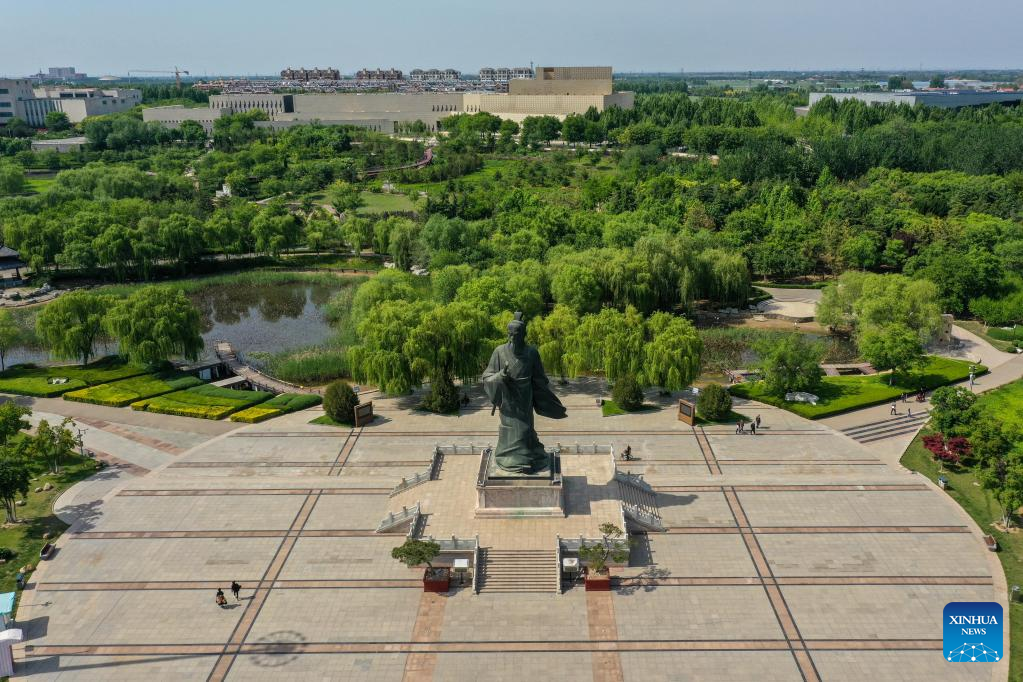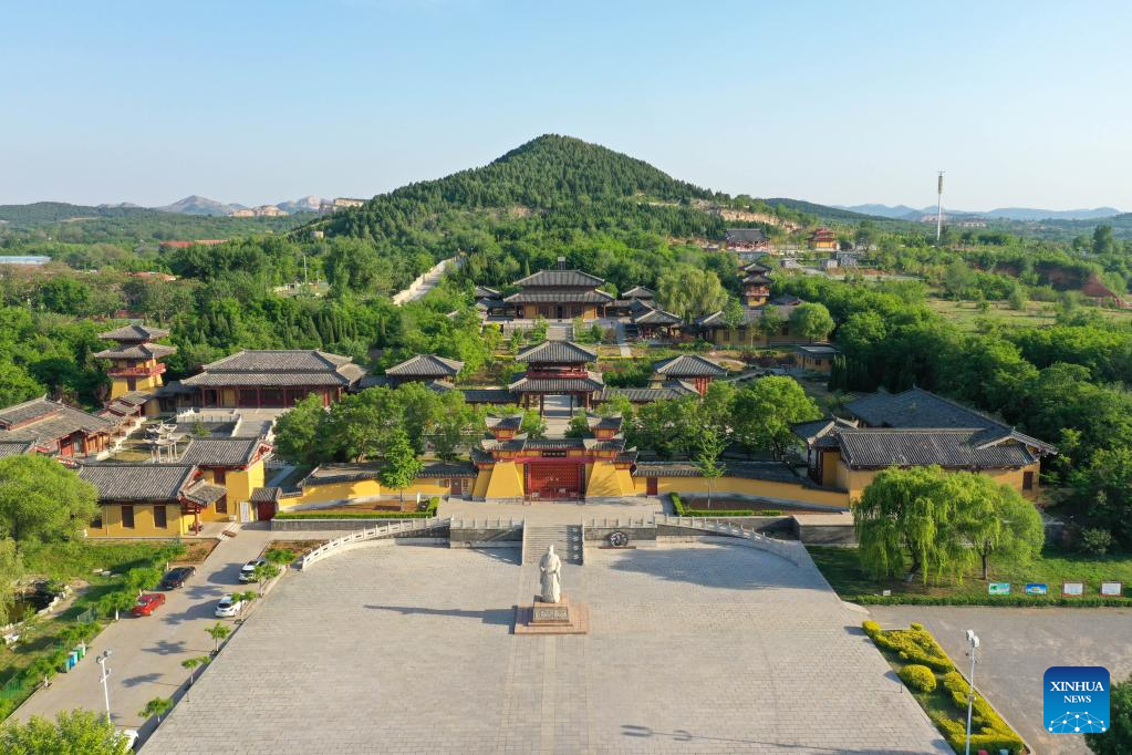 8日、淄博市臨淄区にある管仲(かん・ちゅう)紀念館。(小型無人機から、淄博=新華社記者/朱崢)pagebreak