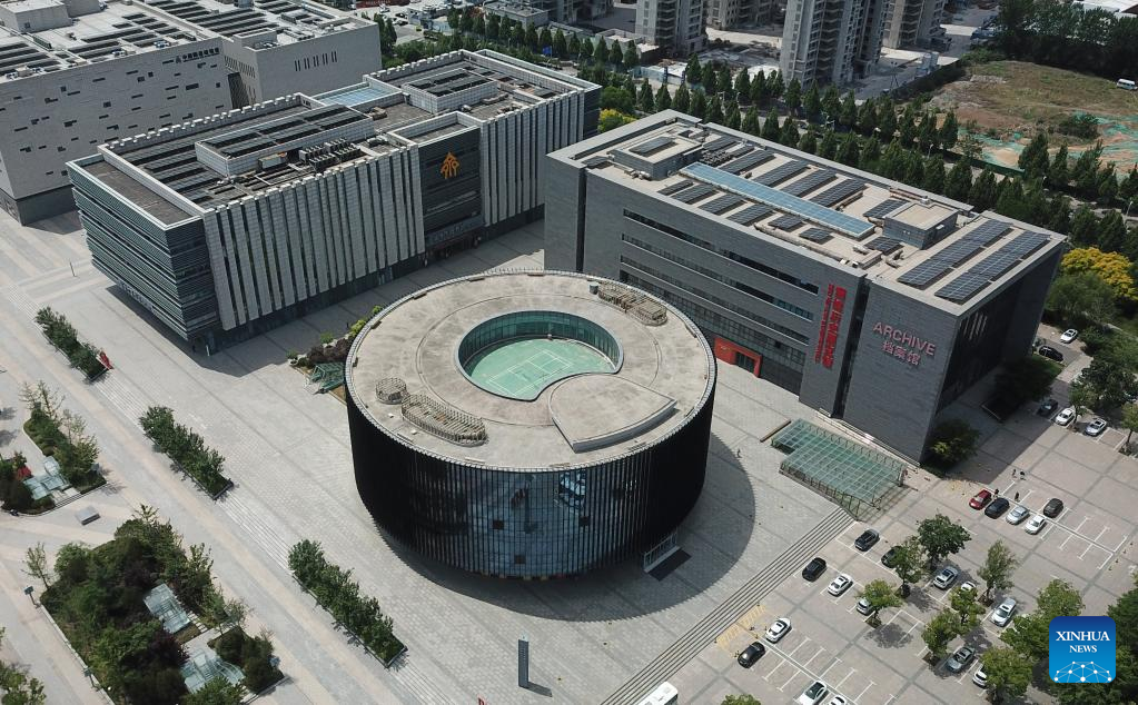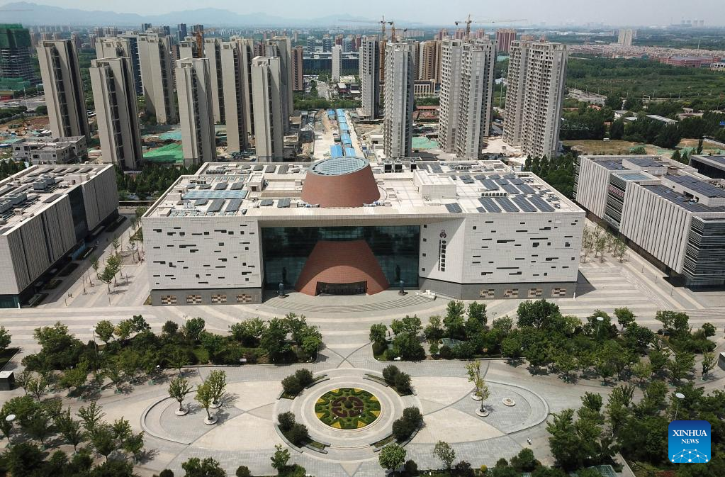 8日、淄博市張店区にある淄博市都市農村計画展覧館。(小型無人機から、淄博=新華社記者/徐速絵)pagebreak