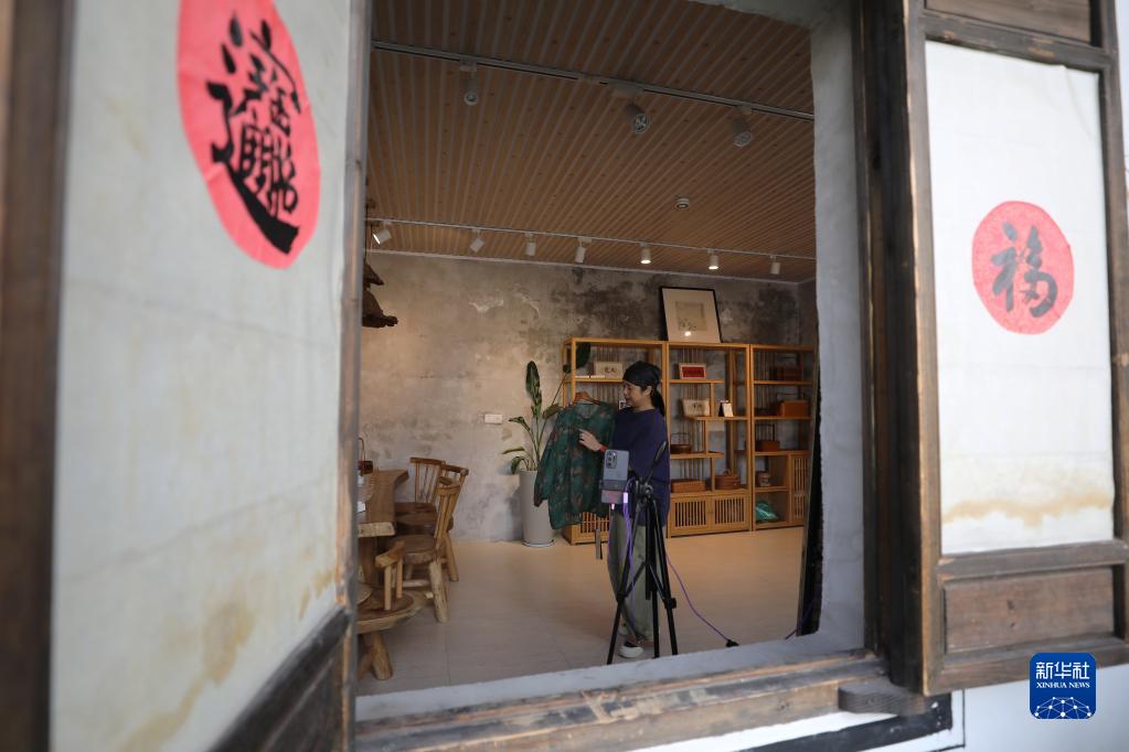 23日、浙江省義烏市李祖村でライブコマースの準備をする創客(メイカー)の鮑麗萍(ほう・れいへい)さん。(義烏=新華社記者/杜瀟逸)