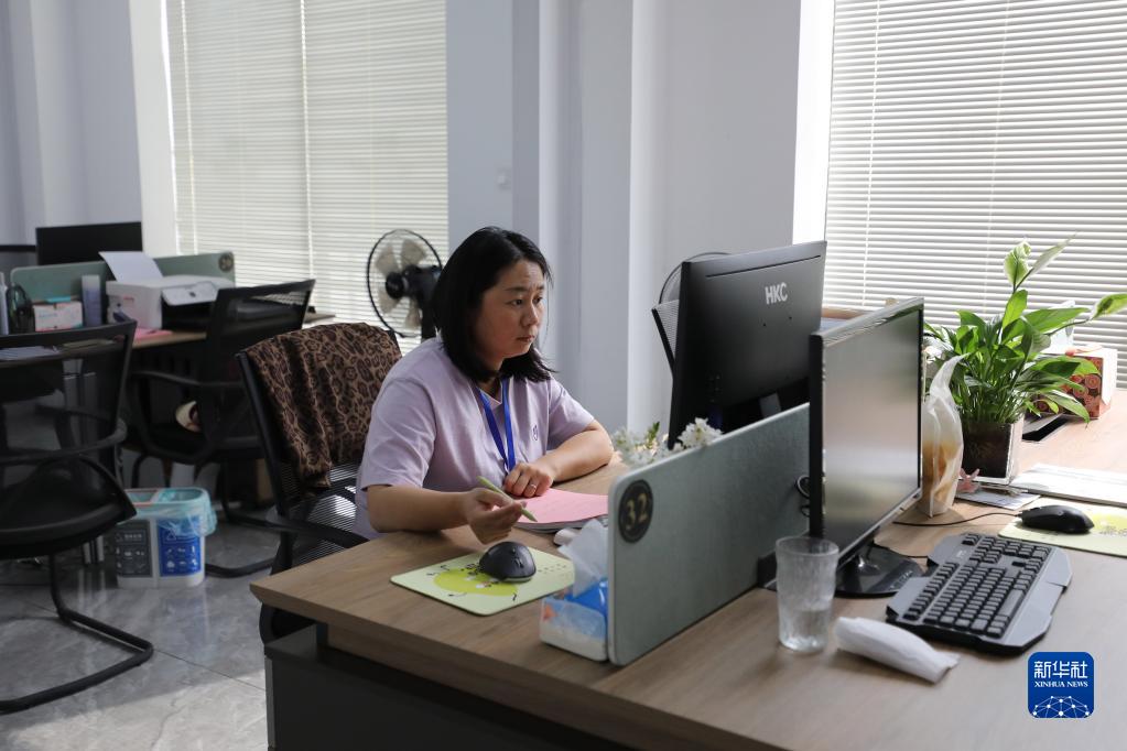 23日、浙江省義烏市李祖村にある共用オフィス「李祖郷遇共富工坊」で仕事をする人。(義烏=新華社記者/杜瀟逸)pagebreak