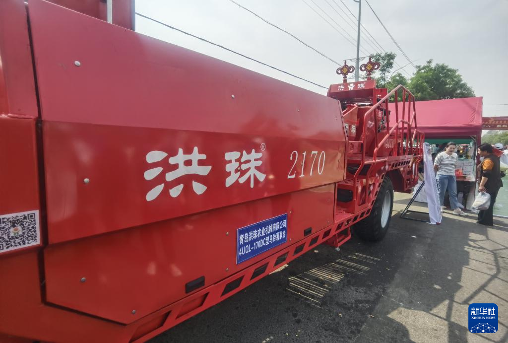 26日、会場で展示された青島洪珠農業機械のジャガイモ用収穫機。(膠州=新華社記者/王凱)pagebreak