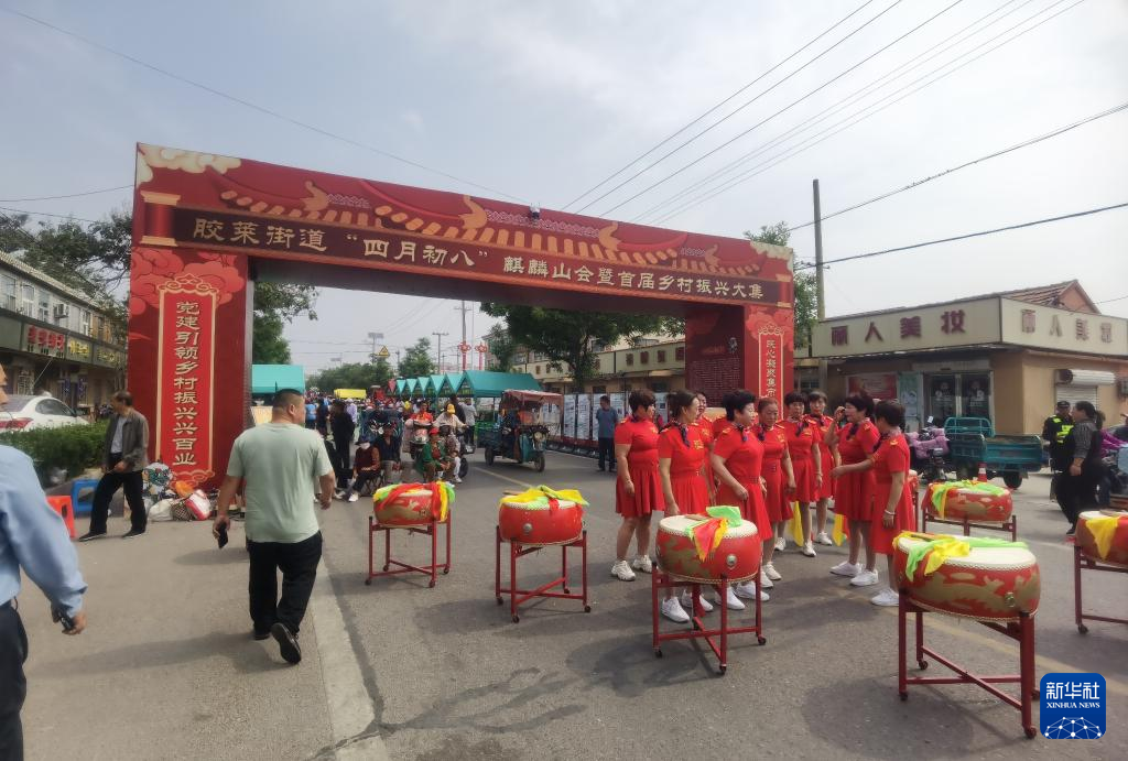 【新華社青島5月31日】中国山東省膠州(こうしゅう)市膠莱街道で26日、麒麟山会と第1回農村振興大市が開幕し、地元の自然有機農産物や農業機械技術などが披露された。