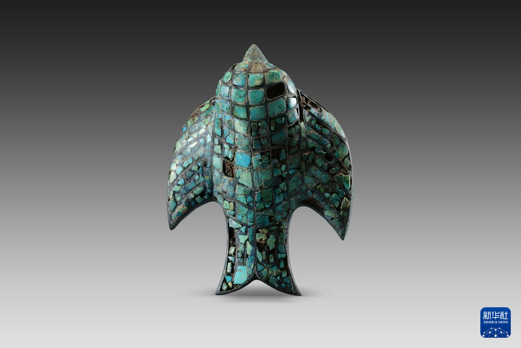 寨溝遺跡から出土したトルコ石を象眼した鳥型装飾品。(資料写真、北京=新華社配信)pagebreak