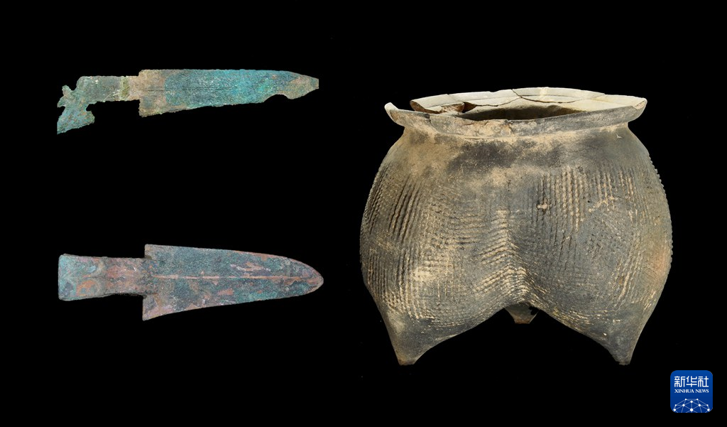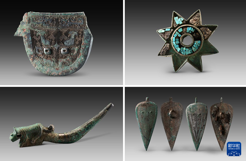 寨溝遺跡から出土した青銅器。(組み合わせ資料写真、北京=新華社配信)pagebreak
