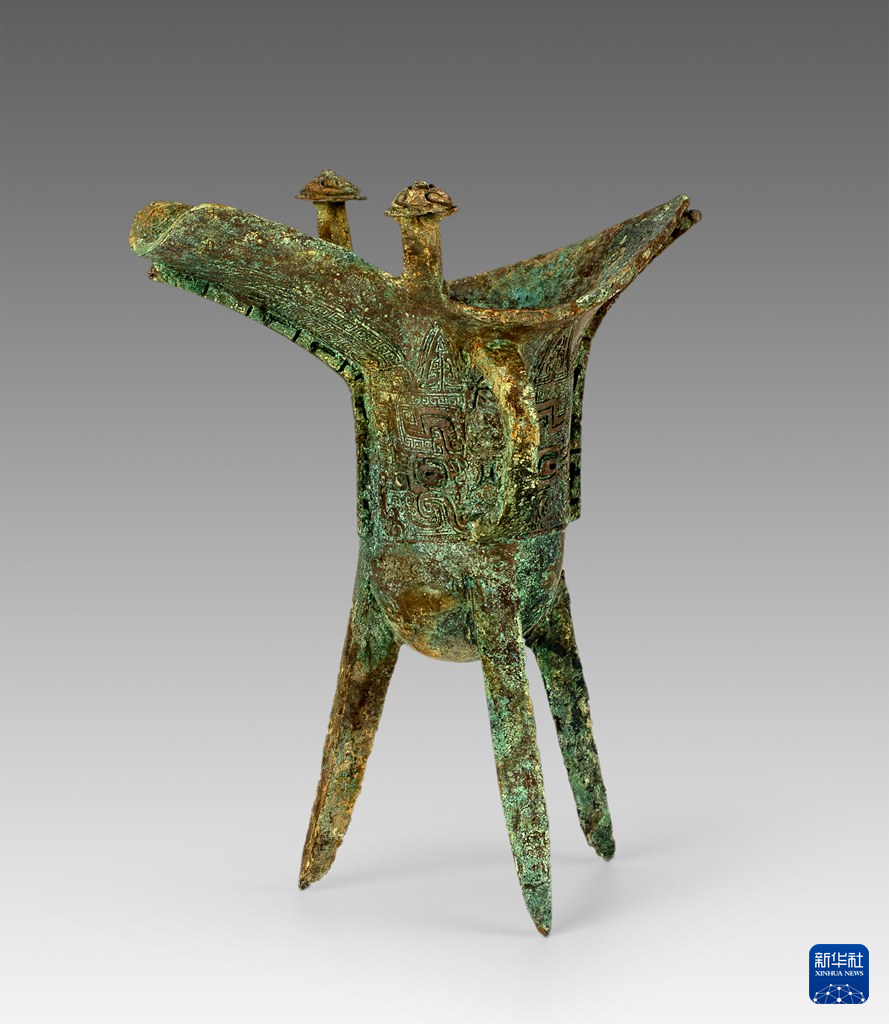 周家荘遺跡(河北省石家荘市)から出土した銅爵(どうしゃく)。(資料写真、北京=新華社配信)