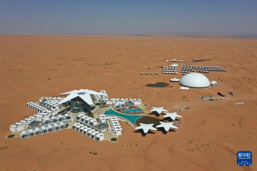 上空から見た「砂漠星星酒店(砂漠の星ホテル)」。(資料写真、中衛=新華社記者/張亮)pagebreak