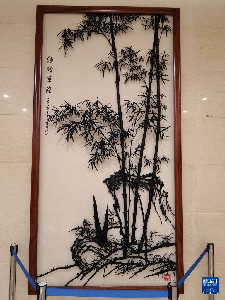 9日、特別展「鉄骨画魂」で展示された鉄画作品「緑竹垂陰」。(蕪湖=新華社配信/張文俊)pagebreak