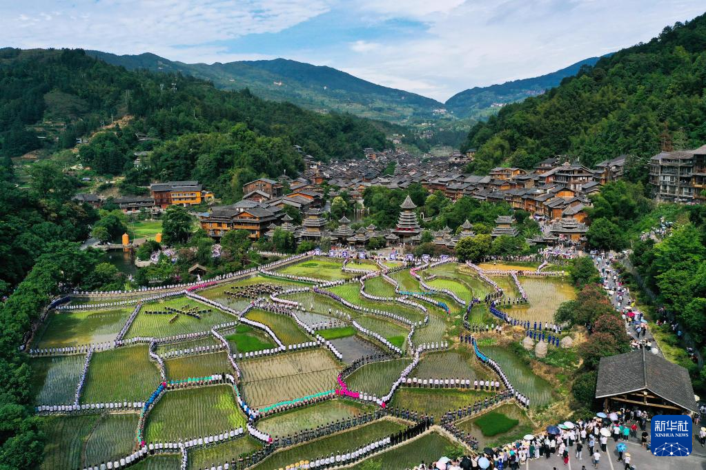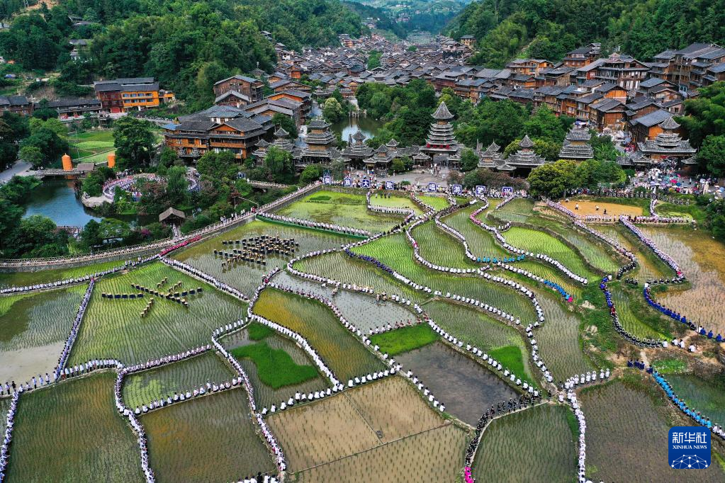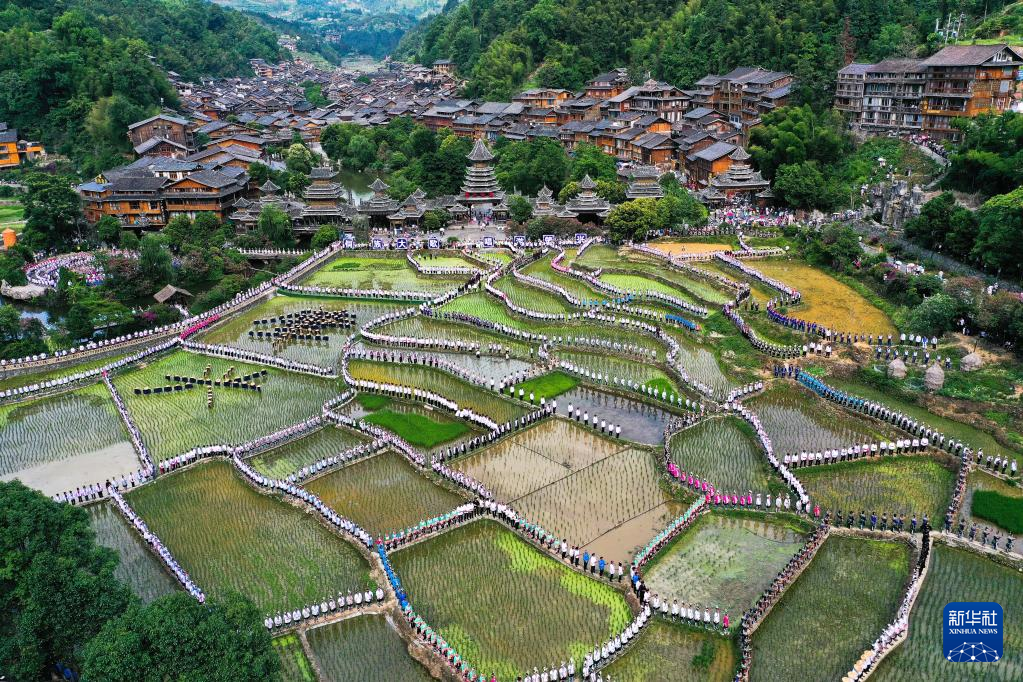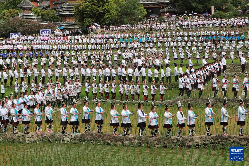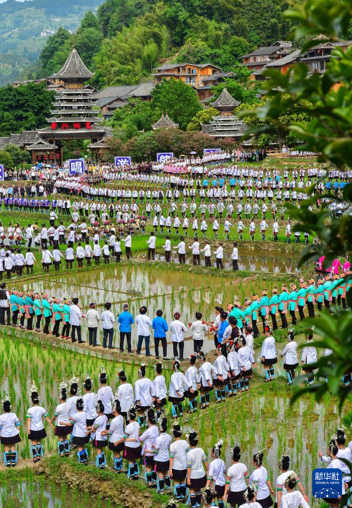 【新華社貴陽6月14日】中国貴州省黔東南(けんとうなん)ミャオ族トン族自治州黎平県の肇興侗寨で10日、自治州内各地から集まった歌手や観光客ら約1万人がトン族の多声部合唱「大歌」などを披露した。