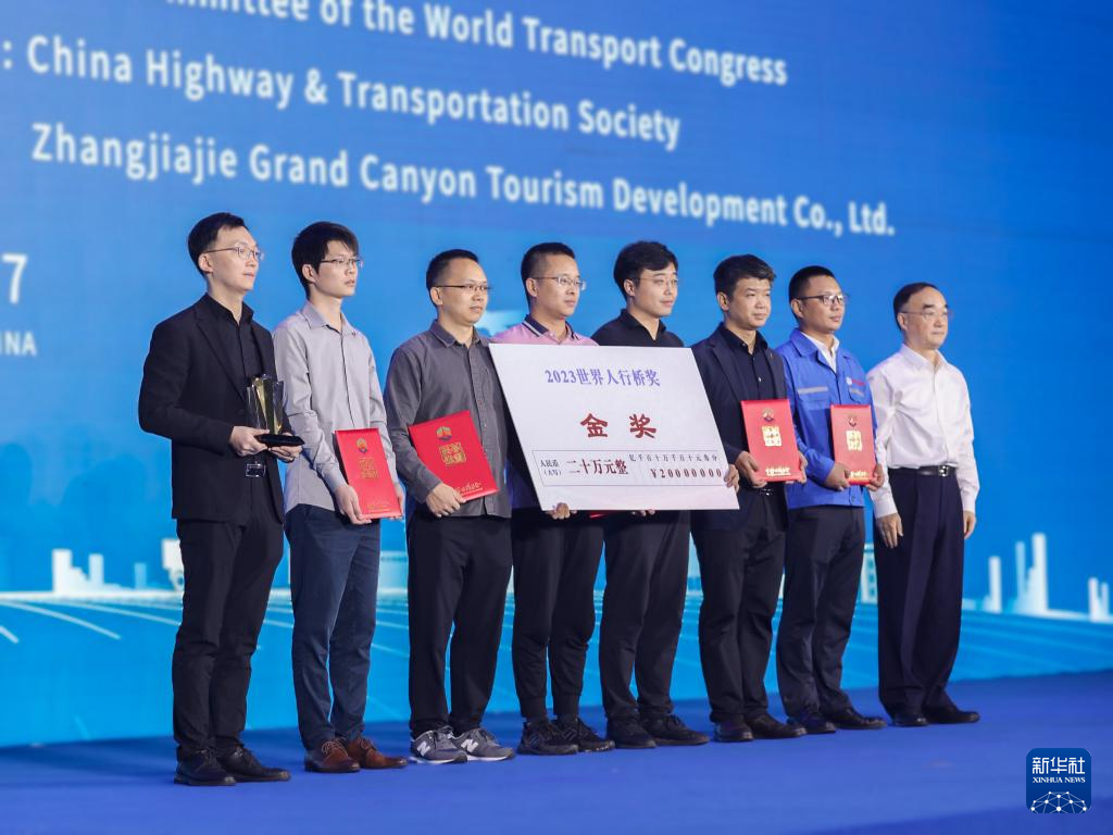 2023世界交通運輸大会で「世界の歩道橋」金賞を受賞した海心橋の設計チーム。(6月17日撮影、広州=新華社記者/劉大偉)