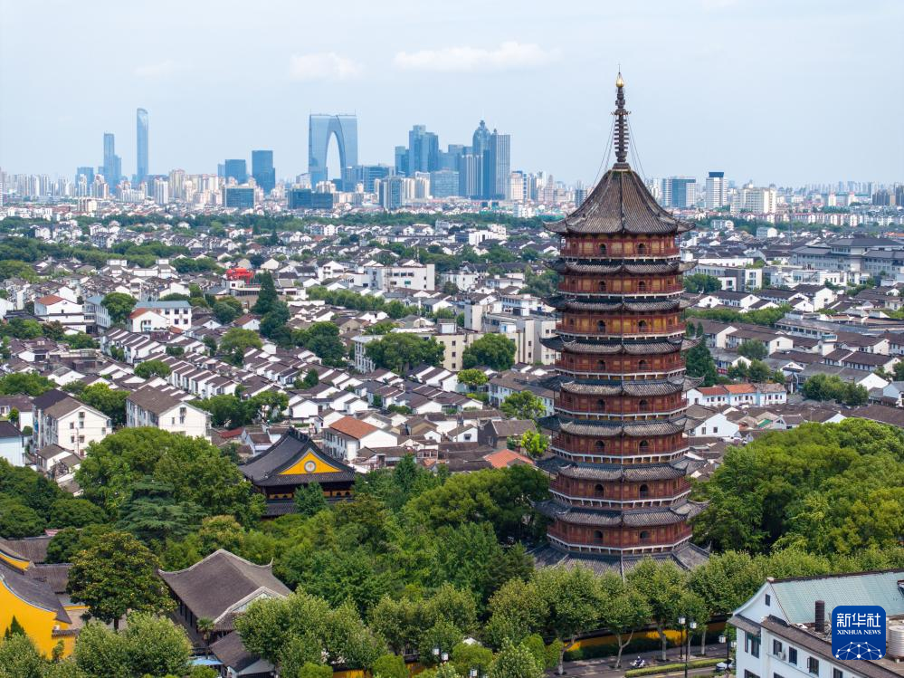 蘇州市の北寺塔。(7月4日、小型無人機から、蘇州=新華社記者/李博)