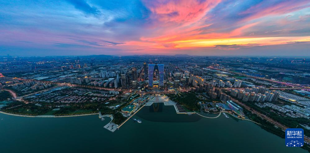 空から見た蘇州工業パークの夜景。(7月3日、パノラマ写真、小型無人機から、蘇州=新華社記者/李博)
