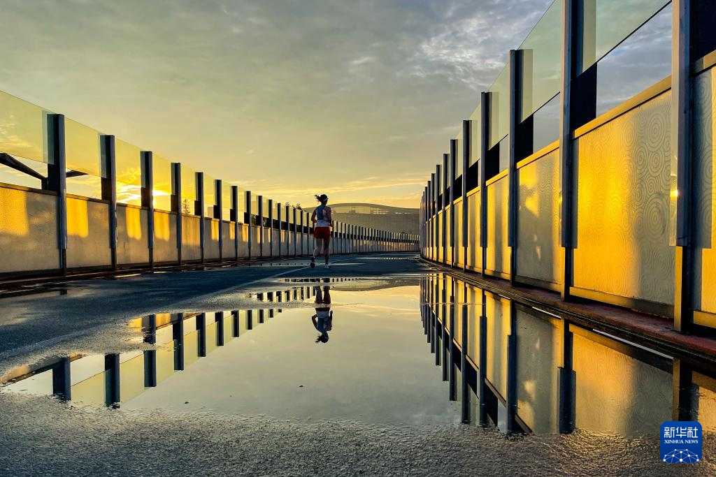 2021年7月17日、成都市の錦城湖公園でジョギングする市民。(成都=新華社記者/沈伯韓)pagebreak