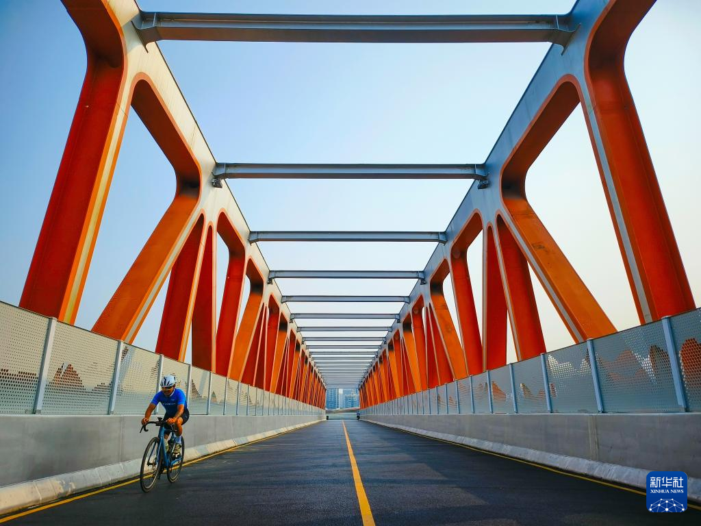 2023年6月25日、成都市の錦城湖付近でサイクリングを楽しむ人。(成都=新華社記者/沈伯韓)pagebreak
