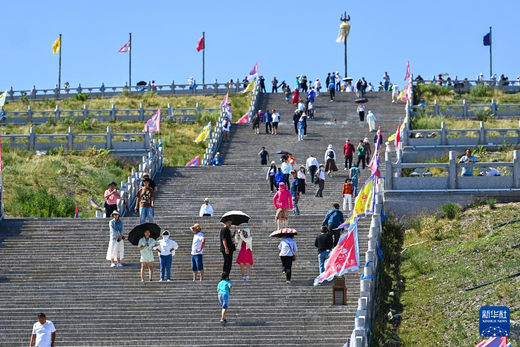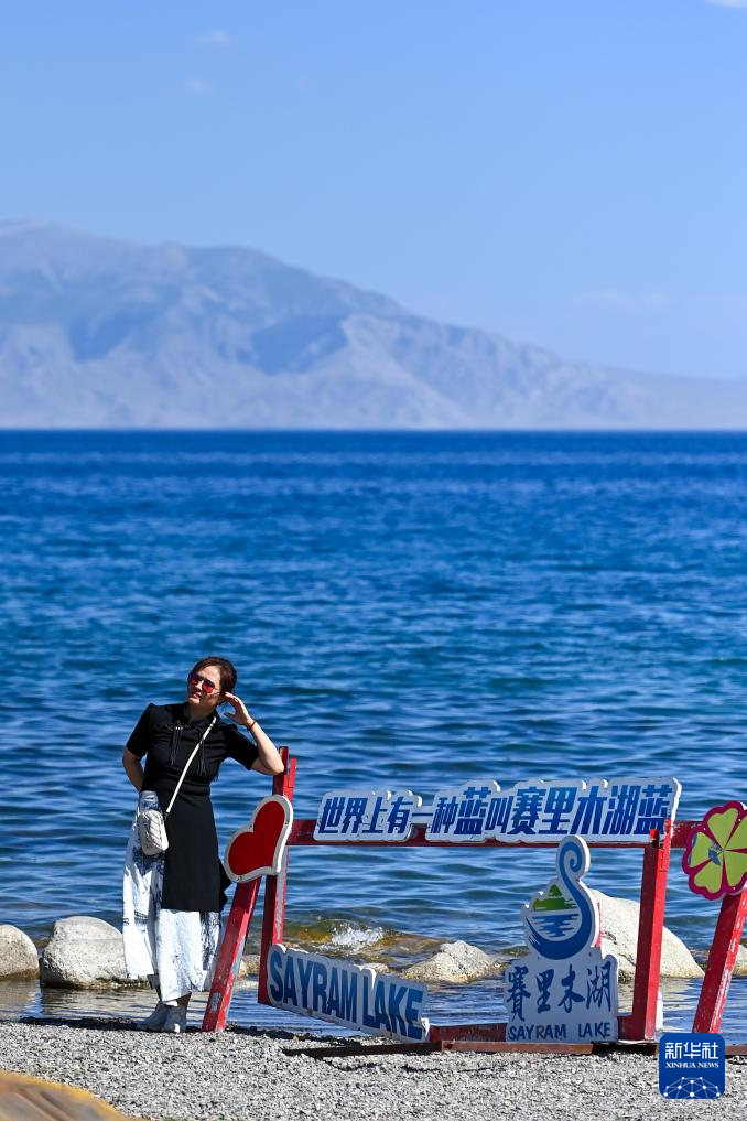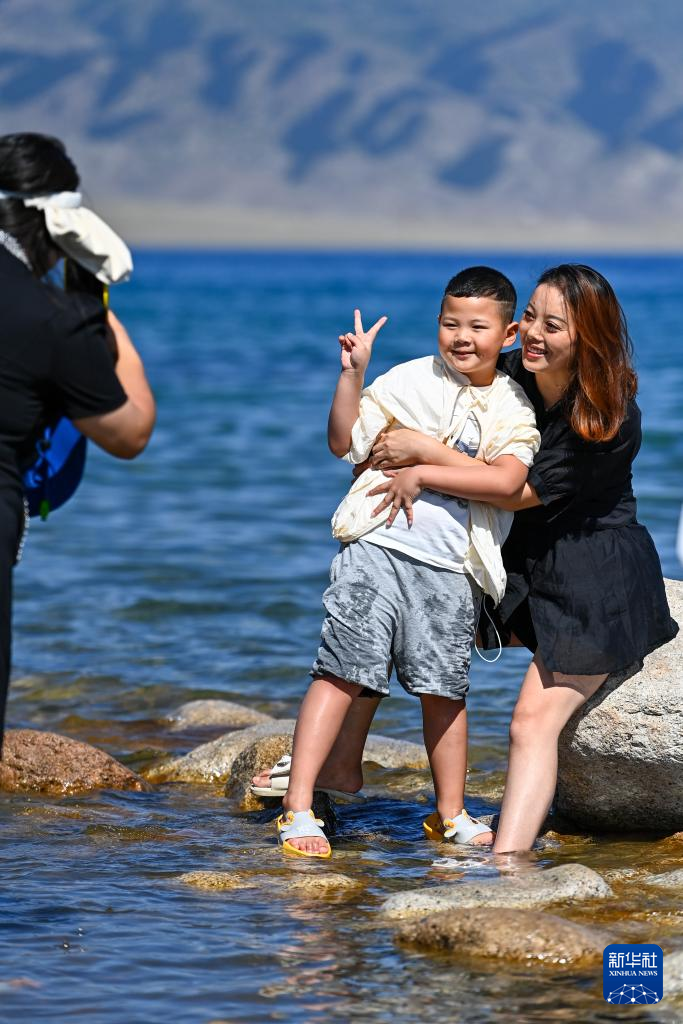 25日、サイラム湖風景区を散策する観光客。(ボルタラ=新華社記者/丁磊)pagebreak