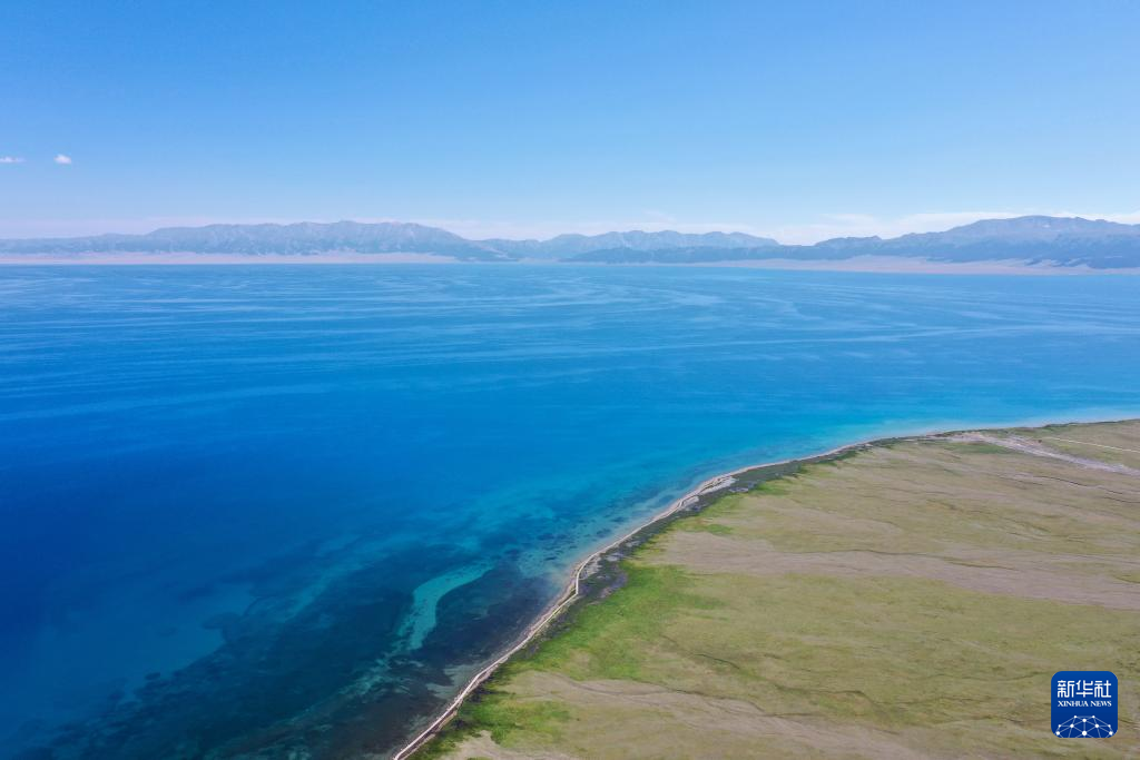 25日、サイラム湖の景色。(小型無人機から、ボルタラ=新華社記者/丁磊)pagebreak